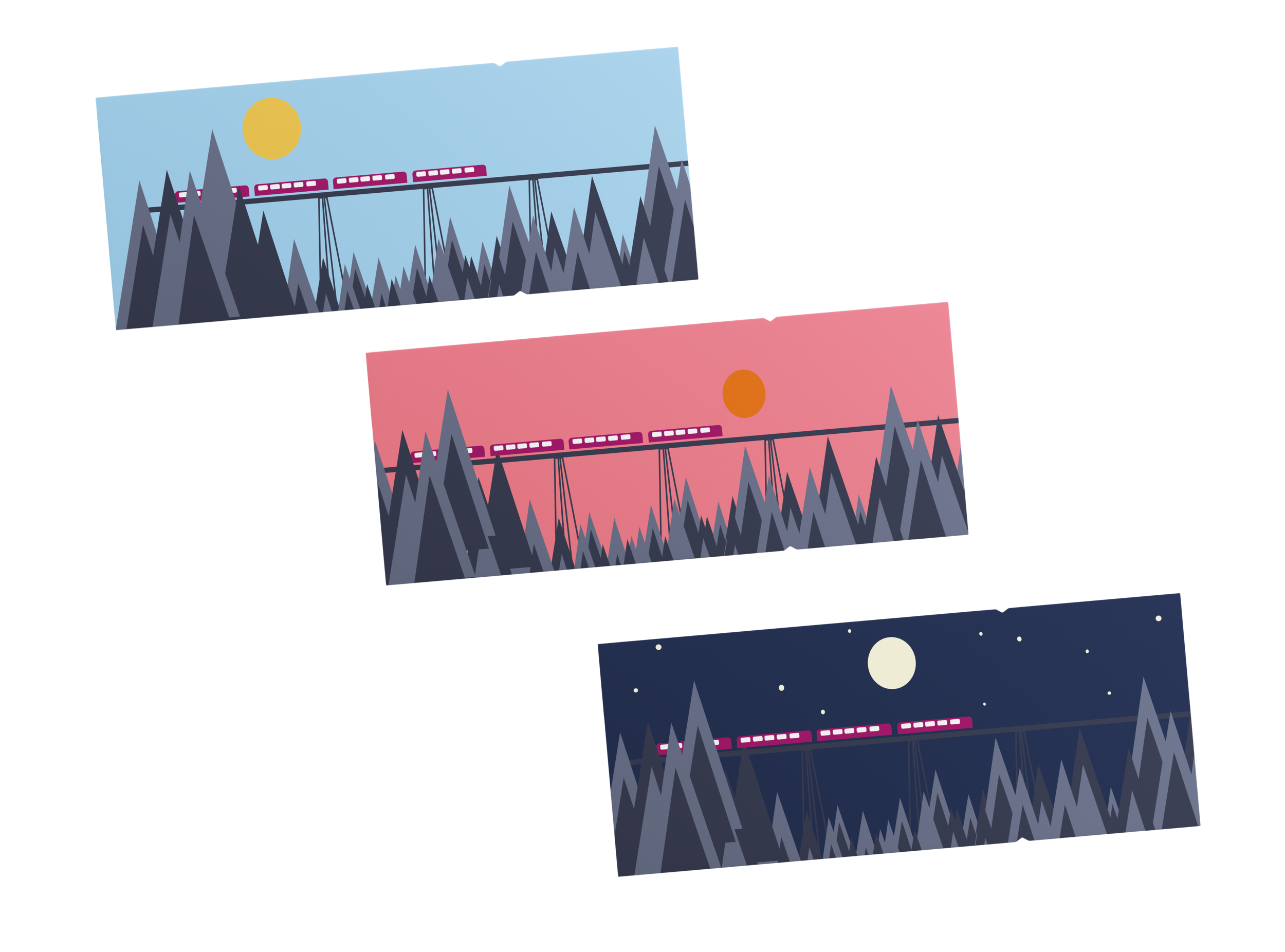 Furthering the design and identity I created initially, I pushed to expand the project package by creating editorial design and new illustrations for train tickets.